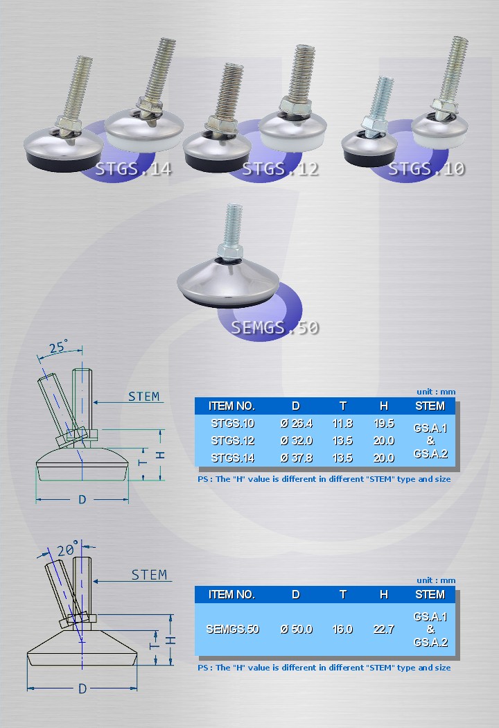 Product Name:Adjusting Glide Country of Origin:Taiwan Model:STGS & SEMGS Material:HDPE base / Stainless steel cover Color:Black or White / Stainless steel Detail Specifications STGS : Material:HDPE base / Stainless steel cover , Color:Black or White / Stainless steel. SEMGS : Material:Nylon base / Stainless steel cover, Color:Black / Stainless steel. Find "STEM" in Specification Image and Product Categories for available stem