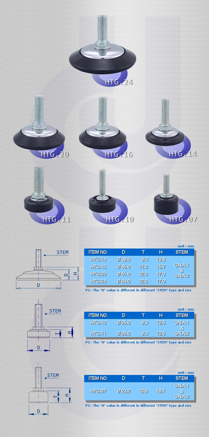 Product Name:Adjusting Glide Country of Origin:Taiwan Model:HTG Material:Nylon base / Chrome Plating steel cover Color:Black / Chrome Detail Specifications Find "STEM" in Specification Image and Product Categories for available stem